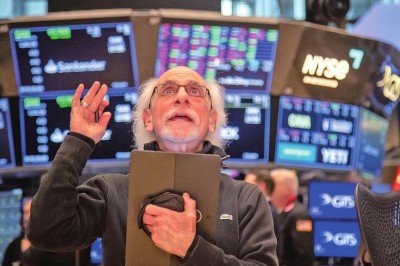 截至4月8日收盘,道琼斯工业平均指数比前一交易日下跌320.01点,收于37645.59点,跌幅为0.84%;标准普尔500种股票指数下跌79.48点,收于4982.77点,跌幅为1.57%;纳斯达克综合指数下跌335.35点,收于15267.91点,跌幅为2.15%。图为交易员当日在美国纽约证券交易所交易大厅工作。新华社发