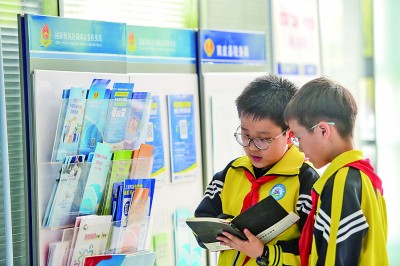 4月9日,河北省南皮县安顺小学的学生们化身“小小税务体验官”,来到国家税务总局南皮县税务局,开启了一场别开生面的研学之旅,通过参观学习、亲身体验,感受税收在生活中的应用,增长了知识。图为参加研学的学生在做记录。何晶摄/光明图片