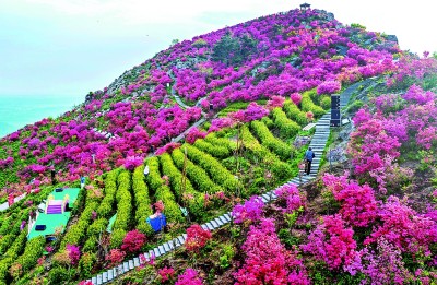 近年来,安徽省无为市大力推动“一镇一业”“一镇一园”建设,其中昆山镇茶园面积万余亩,白茶产业园成功获批安徽省第五批省级现代农业产业园。目前,该镇白茶进入采摘旺季。图为4月10日,昆山镇一处茶叶种植基地,千亩高山野生杜鹃在翠绿的茶园之间绚丽绽放,美不胜收。左学长摄/光明图片