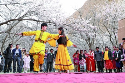 这是大自然独有的馈赠。这片广袤的土地上,孕育着壮观的杏树群落,更有14世纪遗留下来的原始野杏林。每年3月下旬,从吐鲁番盆地到帕米尔高原再到伊犁河谷,杏花次第开放。它耐旱、抗寒、不惧贫瘠,以顽强的生命力将根系深深扎进大地,绽放出明艳繁茂、纵情热烈的花朵。