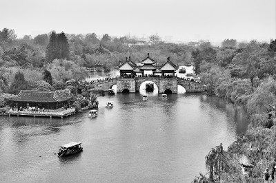 4月12日,江苏省扬州市瘦西湖风景区春意盎然,琼花绽放,杨柳垂丝,吸引全国各地的游客来此参观游玩、欣赏美景。沈冬兵摄/光明图片