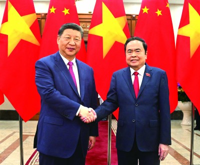 新华社河内4月14日电(记者宿亮、赵旭)4月14日晚,国家主席习近平在越共中央驻地会见越南国会主席陈青敏。