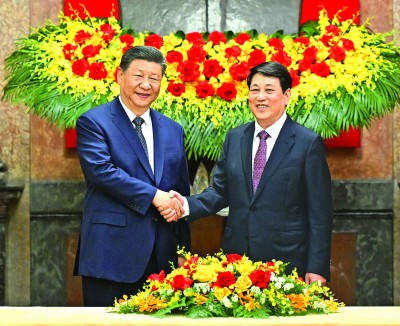 习近平强调,中越双方要以中越友好合作的稳定性和社会主义制度的优越性应对外部形势的不确定性,推动中越命运共同体航船沿着正确航道破浪前行。政治上要把住前行之舵,保持高层战略沟通,加强治党治国经验互学互鉴,共同提高党的领导能力,携手走稳走好各自社会主义道路。安全上要铸牢团结之锚,以两国外交、国防、公安“3+3”战略对话机制升格为契机,持续深化防务和执法安全合作,中方支持越方筹备好越共十四大,支持越方维护国家主权、安全、发展利益。经济上要执稳合作之楫,加强发展战略对接,落实好共建“一带一路”倡议和“两廊一圈”框架对接合作规划,深化铁路、公路、航空多维互联互通,保障产业链供应链稳定畅通,拓展5G、人工智能、绿色发展等新兴领域合作,以新质生产力赋能两国全方位合作格局。人文上要扬起友谊之帆,办好今年“中越人文交流年”系列活动,实施更多“小而美”民生项目,通过文化、旅游、媒体、地方等交流,让中越友好更加深入人心。