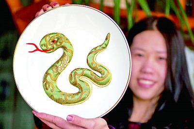 秦氏绢艺生肖蛇装饰画。王子瑞摄