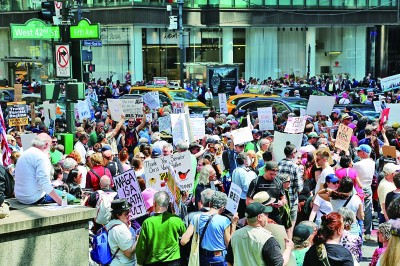 4月19日,人们在美国纽约街头参加抗议活动。新华社发