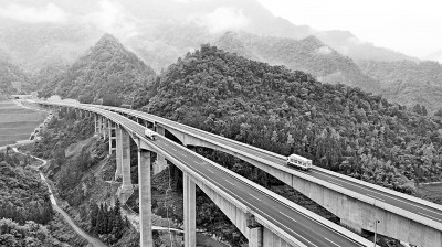 4月21日,在重庆市彭水苗族土家族自治县万足镇,车辆行驶在渝湘复线高速公路替溪沟大桥上,大桥与群山构成一幅壮美的画卷。今年初,渝湘复线高速公路重庆彭水至重庆酉阳段建成通车,对推动沿线地区经济社会发展具有重要作用。赵勇摄/光明图片