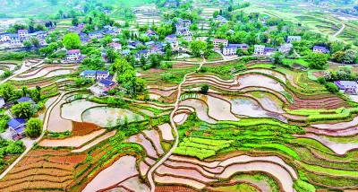 4月22日,重庆垫江县高峰镇太山村,梯田风景、四通八达的乡村路网和错落有致的民居绘就了一幅美丽的田园画卷。龚长浩摄/光明图片