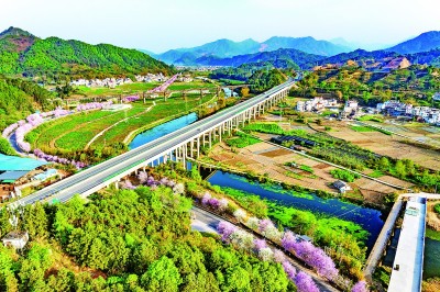 近年来,广西梧州蒙山县大力推进交通基础设施建设,形成以过境高速公路、国省干线、县乡公路、“四好”农村路为骨架的立体交通网络,有效促进县域经济的发展。图为4月22日拍摄的蒙山县蒙山镇高堆村一角。黄胜林摄/光明图片