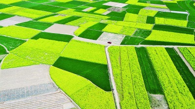 春日里的黄土高原,繁花绽放,美如画卷。图为4月25日在位于黄土高原的甘肃省天水市武山县拍摄的油菜花田。新华社发