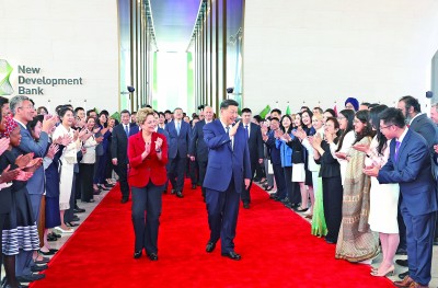 习近平抵达时,罗塞芙率新开发银行4位副行长及员工热情迎接。