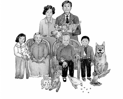 鸭子小白、母鸡阿花、花猫黑咪、兔子佐罗、鸽子米点和小狗阿黄,它们就是“我人生最开始的好朋友”,是一个接一个陪伴着黑狗达走出孤独童年的伙伴。鸭子小白对黑狗达的陪伴与守护,阿太与老母鸡阿花的相依与相惜,父亲与小猫黑咪的默契与惦念,鸽子米点对家人的守望与牵挂,这些人与动物的情感联结,构成探索人性、命运和成长的通道。在作者细腻而深情的描绘中,动物与人、动物与动物之间的情感互动,使我们感受到动物同人类一样,有着纯粹而坚定的情感,有着对友情的执着坚守,对爱与被爱的渴望。面对火鸡的威胁,鸭子小白勇敢地挺身而出,以弱小的身躯保护着黑狗达;母鸡阿花在好朋友大白猪遭遇危险时,不顾一切地展开营救;兔子佐罗处心积虑地为爱妻“复仇”,不惜献出自己的生命……动物们真挚无邪的情谊让黑狗达一点点明白,“感情可比道理重要多了”。在他看来,“这世界很讨厌的一点就是有生老病死”,但也不妨碍我们努力地珍惜,努力地陪伴,虽然无法改变生离死别,却可以“用文字、故事搭建一个窝,能够永久地挽留、安放它们”。