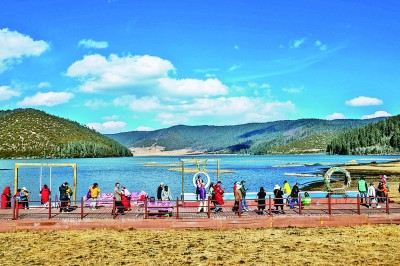 云南省迪庆藏族自治州香格里拉市,地处滇、川、藏大三角交汇地带,是“滇藏茶马古道”要冲。每一个到香格里拉的人,都被自然与历史拥抱,沉醉在雪山、森林构成的“诗和远方”。图为游客在普达措景区参观游览。新华社记者 胡超摄