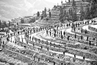 立夏这天,江西吉安遂川县的一场大雨不期而至。迎着风,无人驾驶插秧机在遂川县枚江镇邵溪村的“稻-稻-油”轮作区雨中作业。插秧机走过,一株株嫩绿秧苗便在田里齐整整地扎根安家。