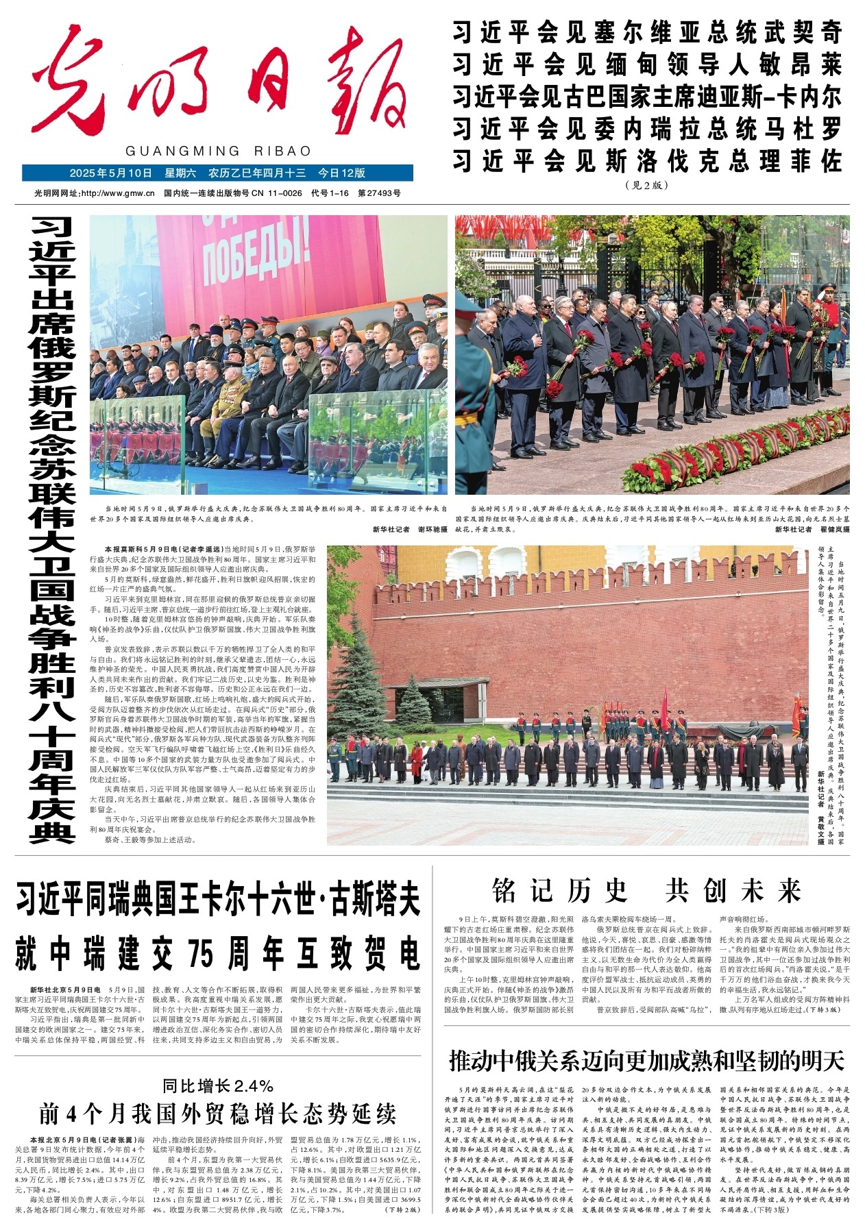 习近平出席俄罗斯纪念苏联伟大卫国战争胜利80周年庆典