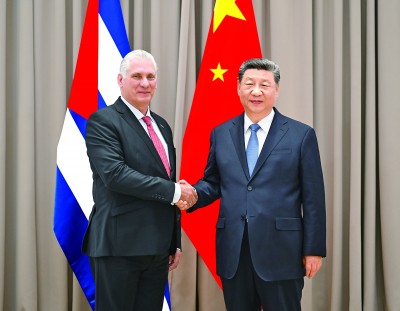 习近平指出,近年来,我同主席同志多次会晤,共同引领中古关系进入政治互信更深厚、战略协作更紧密、民意基础更牢固的新阶段。今年是中古建交65周年,中方愿同古方进一步巩固铁杆情谊,构建更加紧密的中古命运共同体,树立社会主义国家团结合作、发展中国家真诚互助的典范。双方要促进各层级交往、各领域合作进一步走深走实,让高水平政治互信始终成为中古两党两国关系的鲜明标识。中方坚定支持古巴捍卫国家主权、反对外来干涉和封锁,支持古巴经济社会发展。作为全球南方重要成员,双方要在金砖、中拉论坛等框架内加强协调和配合,反对强权政治和单边霸凌,维护国际公平正义。