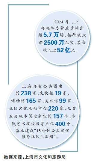 “一年四季到上海,天天都有演出看!”剧迷们这样感慨。数年来,上海深化文艺院团改革,打响驻场演出品牌,增强演艺节展影响力,让上海亚洲演艺之都建设持续释放活力。2024年,上海18家市级国有文艺院团演出10366场,线下观众超过340万人次。舞剧《永不消逝的电波》累计演出超700场,其中在沪驻演145场,成为新时代海内外演出场次最多的红色经典剧目。
