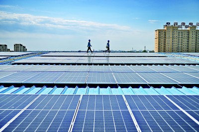 近年来,河北省石家庄市元氏县积极推进分布式屋顶光伏发电项目,鼓励企业利用厂房屋顶架设光伏发电设备,建设屋顶电站,助力企业降低运营成本。图为5月14日,电力工作人员在元氏县一家科技型企业屋顶光伏电站内巡检。新华社记者 牟宇摄