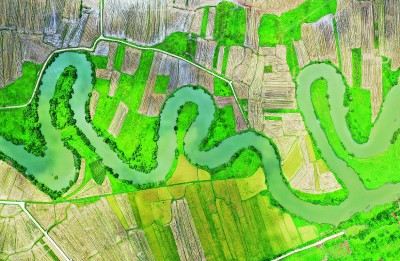 5月15日,位于海南省海口市琼山区云龙镇三十六曲溪两岸的早稻进入夏收时节,弯曲的河流和稻田交错成景。新华社记者 郭程摄