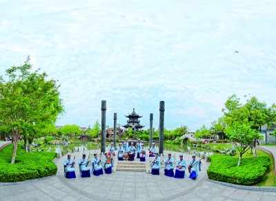 淮安府署内,国家级非遗项目楚州十番锣鼓表演。