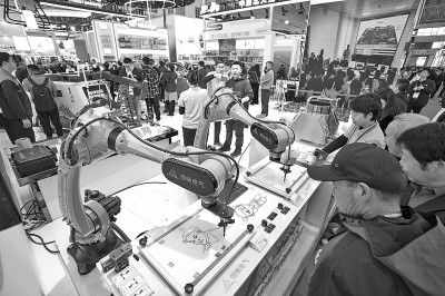 5月17日,第三十四届哈尔滨国际经济贸易洽谈会在哈尔滨国际会展中心启幕。本届哈洽会以“共建向北开放新高地,共享振兴发展新机遇”为主题,围绕对外合作、产业对接、招商引资、品牌推广、文旅消费等举办100余项配套活动。图为参会者在了解一款智能机械臂的运行情况。新华社记者 王建威摄