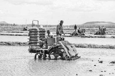 近日,内蒙古兴安盟突泉县2万亩水稻进入插秧季。在突泉县东杜尔基镇明星村的稻田里,村民忙着运秧、上秧,多台插秧机在稻田里往来穿梭。预计突泉县水稻插秧工作将于6月初完成。图为5月19日,农民驾驶农机在稻田里插秧。新华社发