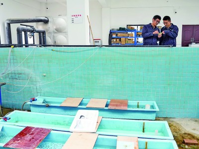 5月19日,记者从中国水产科学研究院黑龙江水产研究所获悉,国家一级保护动物川陕哲罗鲑实现全人工规模化繁育。记者看到,2025年人工繁育的1.2万余尾川陕哲罗鲑子二代鱼苗成功摄食,鱼苗从内源性营养转化为外源性营养,基本具备独立生存能力,标志着我国首次实现这一极危物种的全人工规模化繁育。图为5月18日,科研人员在交流川陕哲罗鲑子二代鱼苗的养殖情况。新华社记者 王曦摄