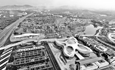 5月20日,广东首个以荔枝文化为主题的开放式特色服务区——包茂高速柏桥服务区正式投入运营。柏桥服务区位于“中国荔乡”高州市根子镇与分界镇交界处,由保利长大承建,以“荔乡水韵,一枝独秀”为主题进行设计,整体造型就像一枝荔枝花。图为5月19日拍摄的包茂高速柏桥服务区。新华社记者 邓华摄