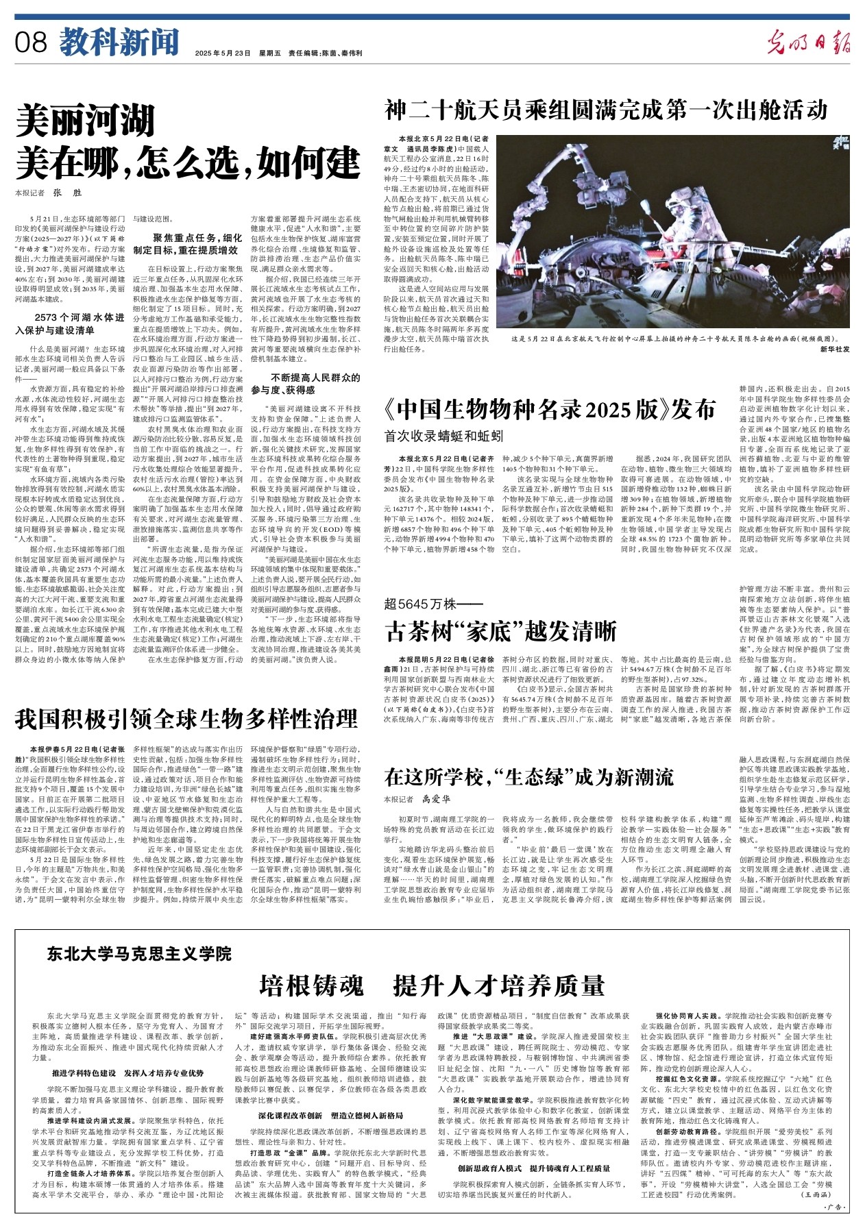 “毕业前‘最后一堂课’放在长江边,就是让学生再次感受生态环境之变,牢记生态文明理念,厚植对绿色发展的认知。”作为活动组织者,湖南理工学院马克思主义学院院长鲁涛介绍,该校科学建构教学体系,构建“理论教学—实践体验—社会服务”相结合的生态文明育人链条,全方位推动生态文明理念融入育人环节。