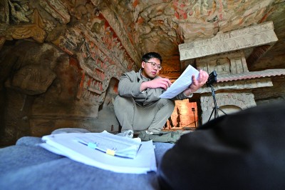 菌群,这个无处不在的生物种群在科学家和文物工作者的研究下,正成为石窟病害防治的新手段。“我们和重庆大学刘汉龙院士团队合作,尝试培育本地菌群,诱导微生物生长繁殖和代谢活动形成矿物质沉淀,将粉化砂体固化为坚硬岩体。”全国人大代表、云冈研究院院长杭侃介绍,微生物修复相比传统的高分子材料修复,兼容性高、绿色环保、耐候性强,还回应了文物修复最小干预、可逆性等特殊需求。