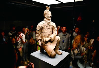 经过科研攻关,文物保护工作者找到聚乙二醇与聚氨酯乳液联合处理和单体渗透——电子束辐射聚合这两套保护方法对彩绘进行加固,留住了秦俑的多彩容颜。秦始皇帝陵博物院与上海科技大学团队合作,通过电镜发现“中国紫”的成分为硅酸铜钡,并模拟古代颜料烧制过程,合成出纯度接近100%的“中国紫”。