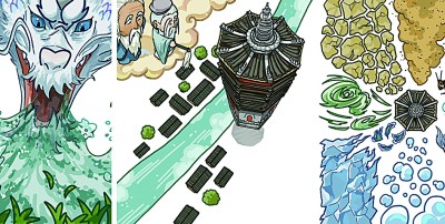 作为该桌游的重要组成部分,绘本的创作是一大亮点。设计师在保留燃灯塔民间传说核心概念的前提下,对文本进行了儿童化改编,语言表述充分考虑适龄性,分镜设计强化了戏剧张力。在视觉呈现方面,设计师选择以毡头笔描绘故事场景,线描的稚拙风格配合高饱和度的明快色彩,既保留了传统文化韵味,又符合当代儿童及青少年的审美习惯。这样的艺术处理方式,不仅让故事内容变得生动有趣,更能在潜移默化中培养孩子们的色彩感知能力。