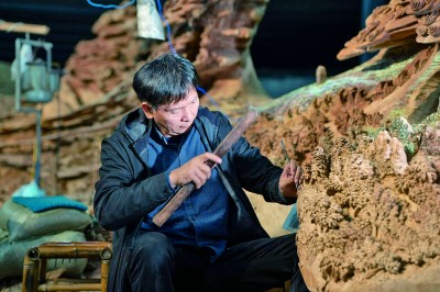 为了做到这一点,郑春辉多年前便开始准备。从创作筹划到实地考察,从图纸绘制到开工雕刻,这一过程就花了5年时间。其间,他跋涉了长达1974公里的运河沿线,记录下运河地理走势、舟船形制、市镇风情,力求雕刻的每一处细节都经得起推敲。“目前,《京杭大运河》已完成粗坯创作,下一步我还会把房屋的飞檐瓦当、船上的绳索纹理等细节雕琢清晰。”郑春辉做足了准备。