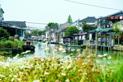 向西而行,另一处水乡秘境在绿荫深处渐次展开。这里是明代文学家、戏曲家冯梦龙的故乡——冯梦龙村。在村里的山歌酒馆,墙上全是手抄的《送郎》《茉莉花》等诗词,展现着当年冯梦龙采录民间歌谣的活态传承。移步冯梦龙书院,人们可以自己拓印《三言》中的警世恒言,将这位“市民文学先驱”的处世哲学收入囊中。