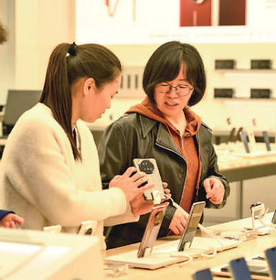 江西宜春市袁州区,消费者在选购国产手机。周亮摄/光明图片