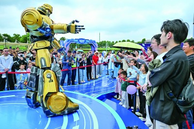 6月2日,“世界机器人嘉年华”活动在武汉花博汇景区举行。本次活动以近百台机器人为表演核心,机器人乐队、机器宠物、化妆机器人等陆续亮相,游客可以近距离与机器人接触,感受科技赋能文化与生活的魅力。图为游客在与机器人互动。新华社记者 杜子璇摄