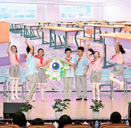 6月3日,“抓早抓小抓关键,健康‘视’界齐守护——海淀区‘6.6全国爱眼日’主题宣传活动”在北京市海淀区实验小学举行。活动通过多样化科普宣传与实践体验,传递爱眼护眼理念,引导学生养成良好用眼习惯。图为学生们表演情景剧《眼睛保卫战》。新华社发