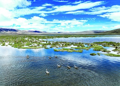6月4日,青海省玉树市境内的隆宝滩湿地,水草丰美,景色如画。新华社发