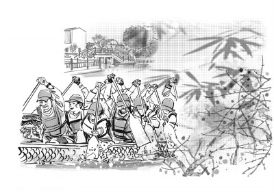 胥山与胥河一脉相连。伍子胥于胥山磨剑练兵,把自己磨砺成了一个精通水战兵法的传奇,这条东通太湖、西入长江的胥河,就是他主持开凿的一条运河。这是世界上最古老的人工运河,它为苏浙一带的漕运和灌溉打通了一条捷径,也为一方百姓化解了水深火热的洪涝之灾。这是伍子胥让后世感念的功德。明代卓绝的狂士李卓吾力主“本以为民”,他盛赞“伍子胥绝孝纯忠,惊天震地,楚之烈也”。痛哉,这位“楚之烈”和另一位“楚之烈”最终均落得了投江的命运,不同的是,屈原是自己怀沙自沉汨罗江,而伍子胥则是被吴王夫差赐剑令其自尽后,被沉入钱塘江。伍子胥之死比屈子更早,他被江南百姓尊为伍君,“五月五,迎伍君”,这胥山与胥河是祭祀伍君的初始之地,也是当地端午节俗的另一个源头。我在胥山品尝了百般滋味的嘉兴粽子,也在胥河看到了比汨罗江龙舟更源远流长的嘉兴龙舟,人道是“浙波只有灵涛在,拜奠青山人不休……”
