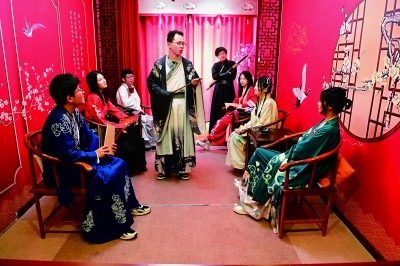 玩家在古风剧本杀中演绎剧情 新华社发