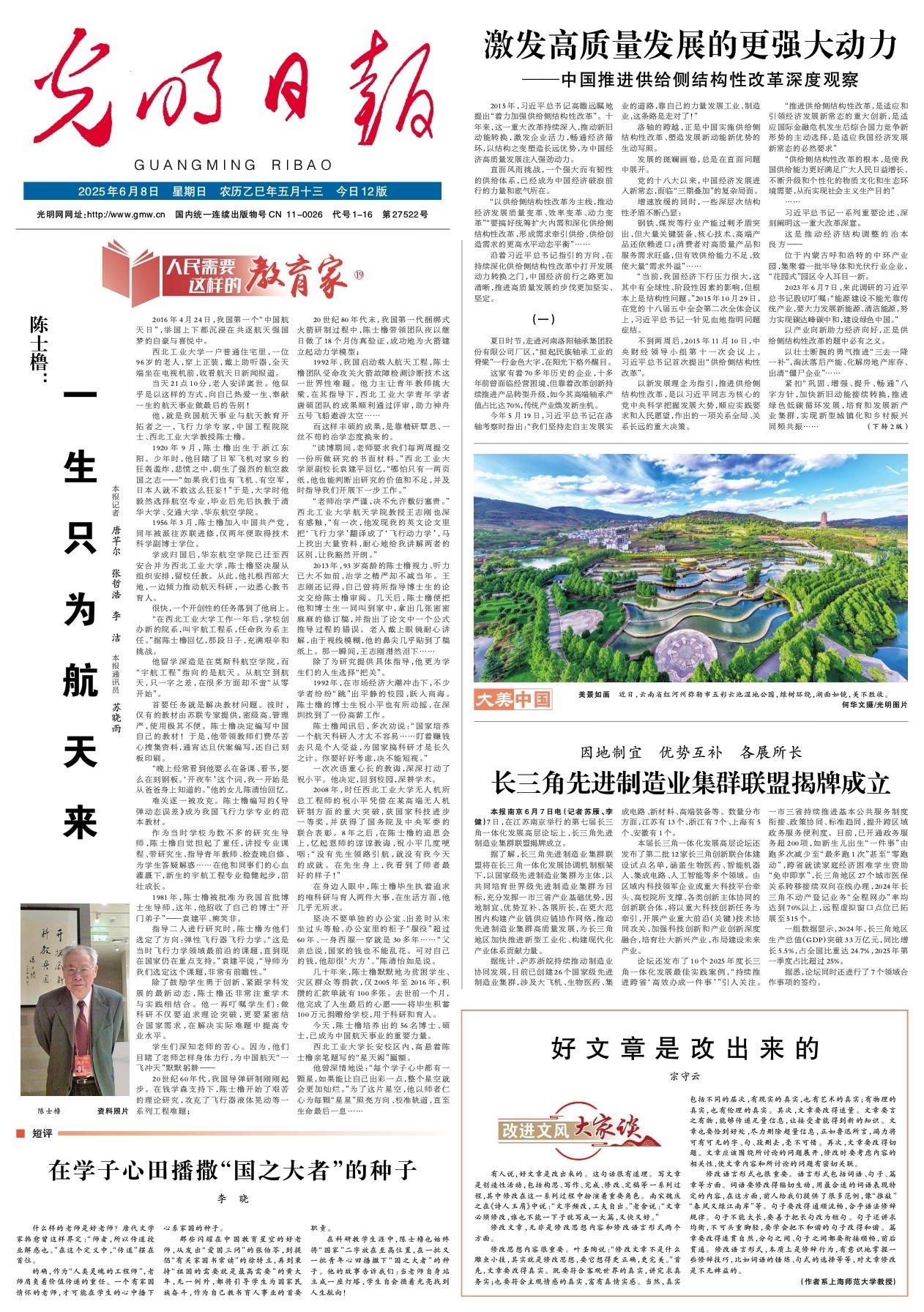 1992年,我国启动载人航天工程,陈士橹团队受命攻关火箭故障检测诊断技术这一世界性难题。他力主让青年教师挑大梁,在其指导下,西北工业大学青年学者唐硕团队的成果顺利通过评审,助力神舟五号飞船遨游太空……