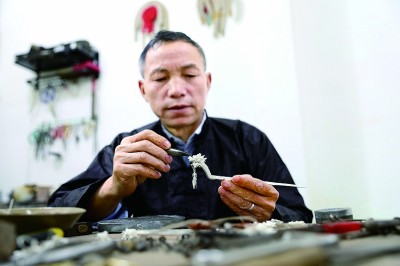 过去,为拥有一件银饰,苗族同胞们节衣缩食,把毕生积蓄全都用于此项。“为了不辜负大家的喜爱,做银饰锻制需要有过硬的技术,更要倾注心血。”吴水根说,从铸炼、锤打、拉丝、编丝,再到雕刻、焊接,每一件银饰工艺品都需经过千百次的锤打和巧夺天工的手法制作而成。