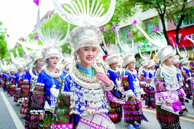 台江被誉为“天下苗族第一县”,苗族银饰锻制技艺分施洞型、巴拉河型、西江型、排调型等众多流派,2011年被列入国家级非物质文化遗产名录。银角、银衣、项圈……一件银饰需经历熔铸、拉丝、錾花等30余道工序,最细的银丝堪比发丝。