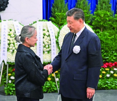 上午9时30分许,习近平、李强、赵乐际、王沪宁、蔡奇、丁薛祥、李希等,在哀乐声中缓步来到许其亮同志的遗体前肃立默哀,向许其亮同志的遗体三鞠躬,并与许其亮同志亲属一一握手,表示慰问。