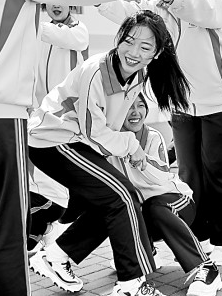 高考前夕,江西省抚州市南丰县第二中学学生进行“拥抱向前冲”游戏放松身心。谢东摄/光明图片