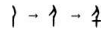 可以看出,计算机已能再现字形轮廓和笔顺,但对第二笔的起始位置把握欠佳:第二笔不应与第一笔交叉穿出;二、三笔虽顺序相接,但笔迹并不相连,即第二笔的终点并非第三笔的起点。