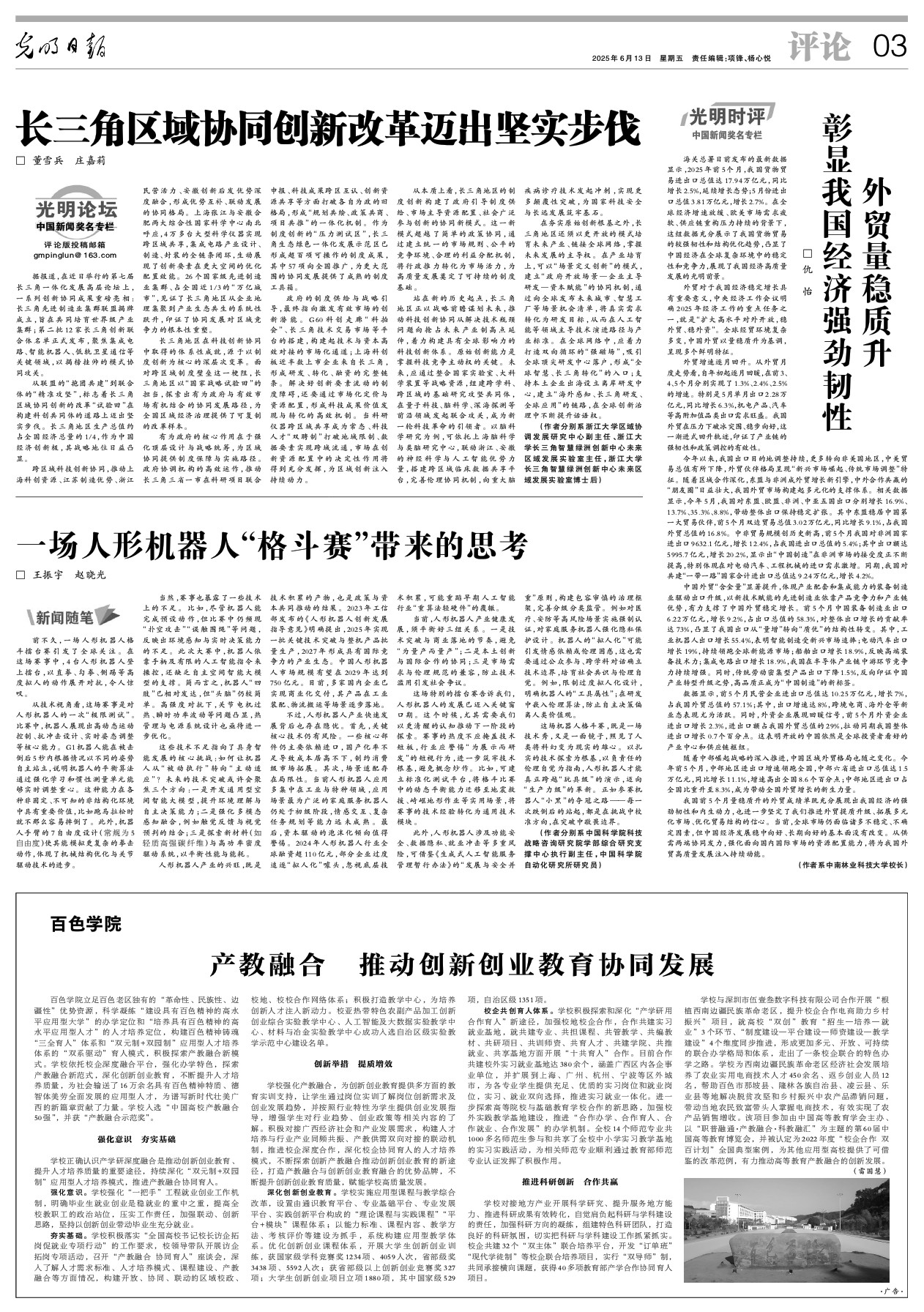 【光明论坛】长三角区域协同创新改革迈出坚实步伐