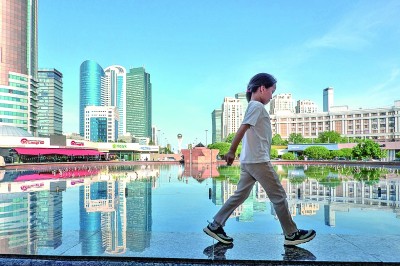 骄阳下的阿斯塔纳 6月14日,民众在哈萨克斯坦首都阿斯塔纳市中心徜徉休憩。均为本报记者 李遥远摄/光明图片
