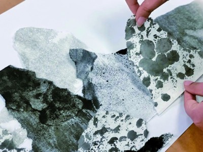 在公共艺术领域,水墨艺术的形式创新则让“戏笔”美学走入大众日常生活。如杭州地铁以3D投影技术呈现国风动态水墨画卷,墨迹如烟霞般升腾消散,传统“泼墨”被转化为实时渲染的视觉奇观,古老的艺术形式在现代空间焕发新生。“海上明月·纪念吴昌硕诞辰180周年艺术大展”则通过工作坊的形式,引导观众拼贴出兼具传统笔墨意趣与现代材质语言的山水意境,使“墨戏”从单向的艺术表达转化为多维度的互动参与,将古代画者“解衣盘礴”的创作状态,转化为大众可参与的集体游戏。