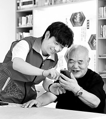 在河南洛阳长春路街道办事处洛铜社区科协院邻里中心,养老管家教老年人使用智能手机。张光辉摄/光明图片