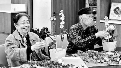 山东济南某养老社区组织老年人参加插花活动。光明图片/视觉中国